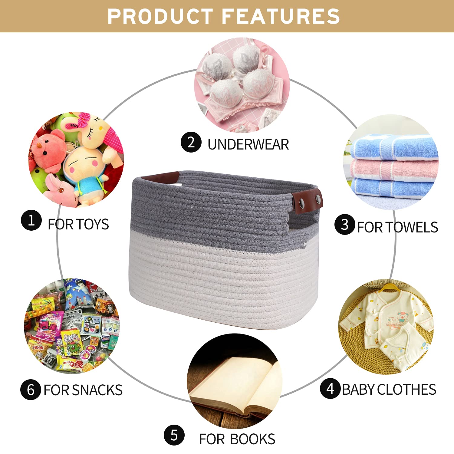 Artisanal Handmade Storage Baskets cotton in white – grey