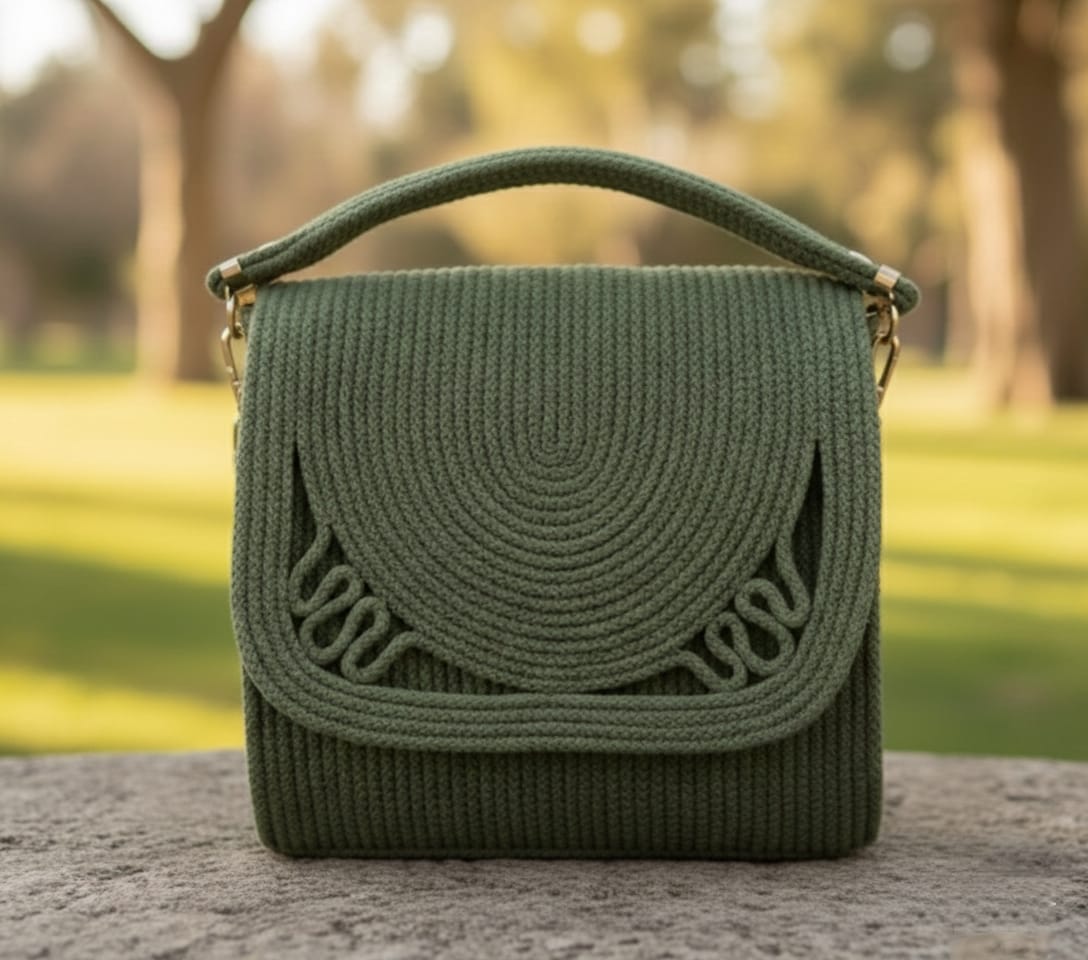 Cotton rope boho fancy handbag stlish handmade .Handmade cotton cored corssbody Bags small purse with gold chain strap and strap and clasp, Elegant shoulder bag,