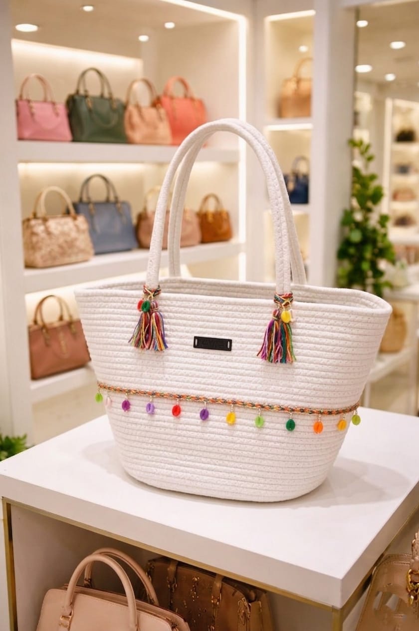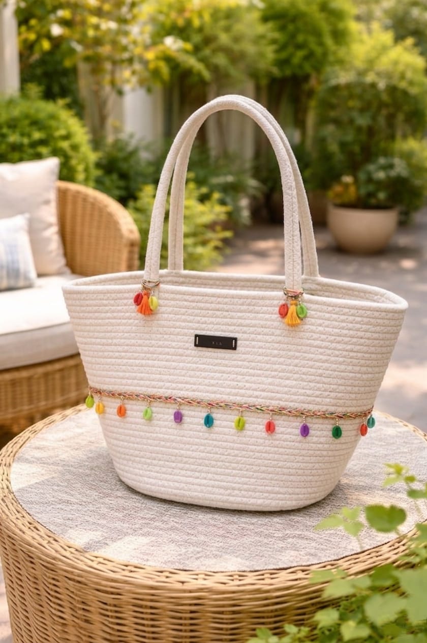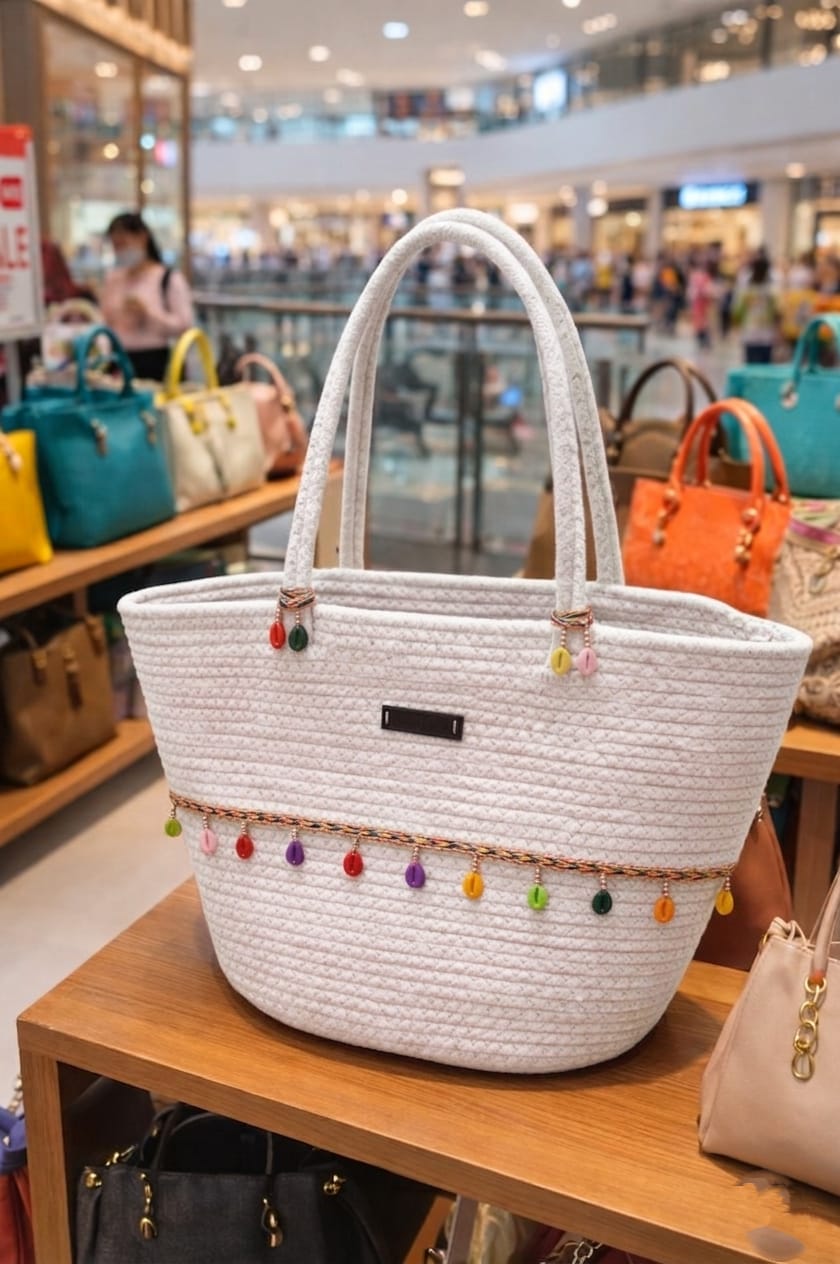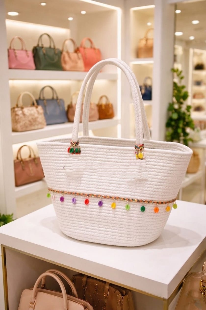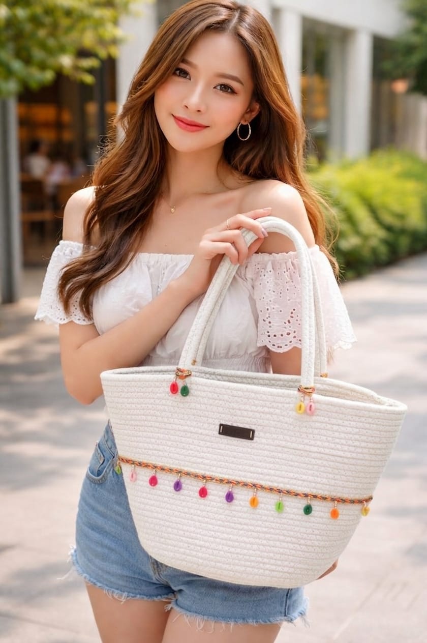Cotton Rope Handmade Cotton rope bag Rope Crossbody – Bho Summer Pures Handmade Claret Woven Straw Bag: Boho Wooden Handle Pures COLER WHITE