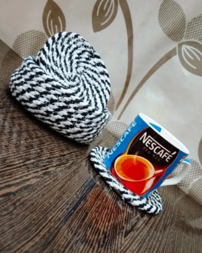 Cotton Rope/ Jute /Small Dry grass/Natural Cane/Chic Dry Grass Bag/Farmhouse Coasters for Drinks/Absorbent Coasterfor Fabletop Protection/Women Coaster,Rustic Coaster,Rope Drink Coaster-Black Molding