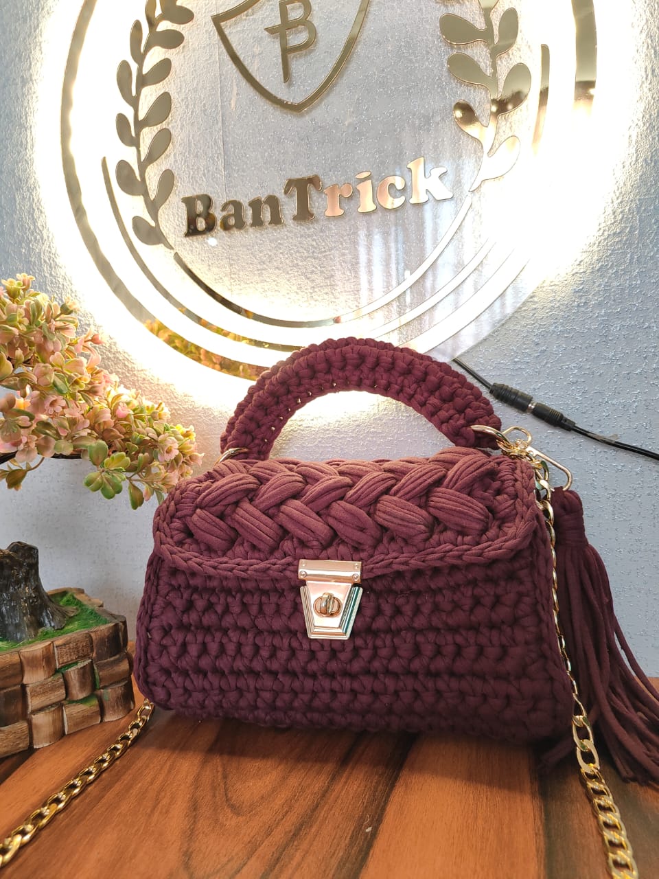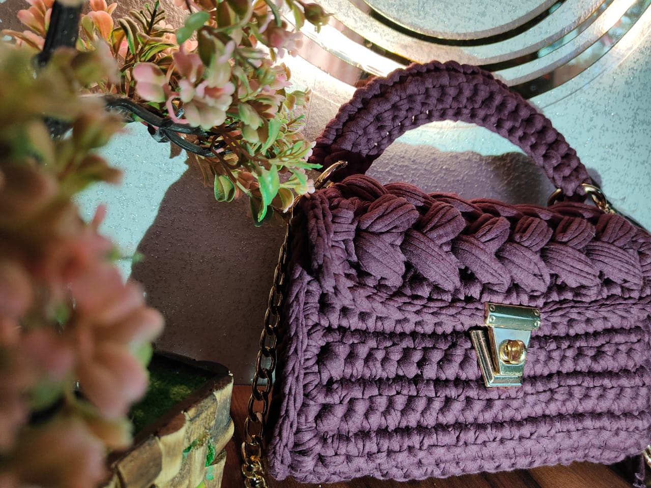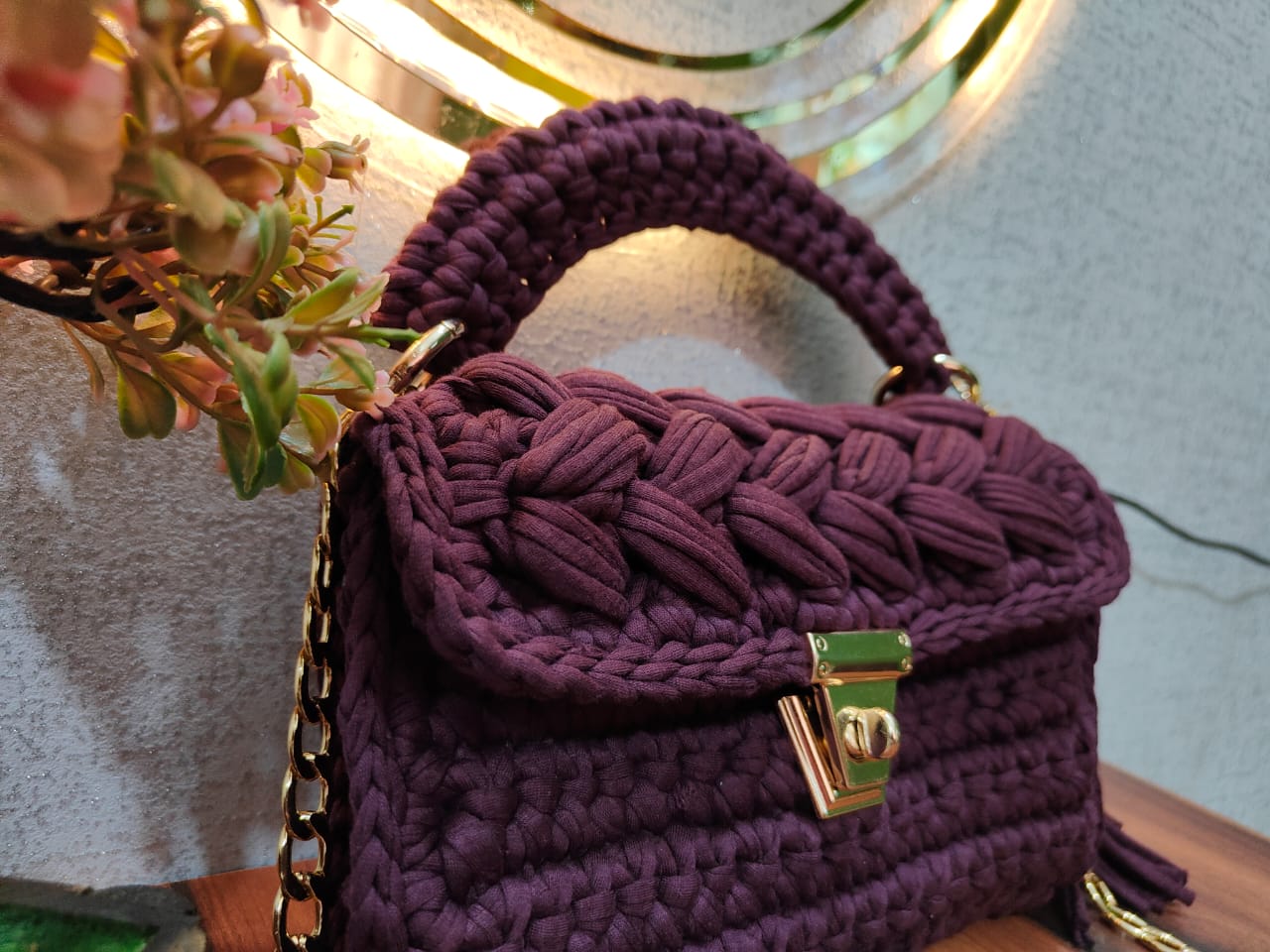 Be the first to review “Hand Knitted Swivel Clasps Snap Hook Crochet Bag in purple Color”