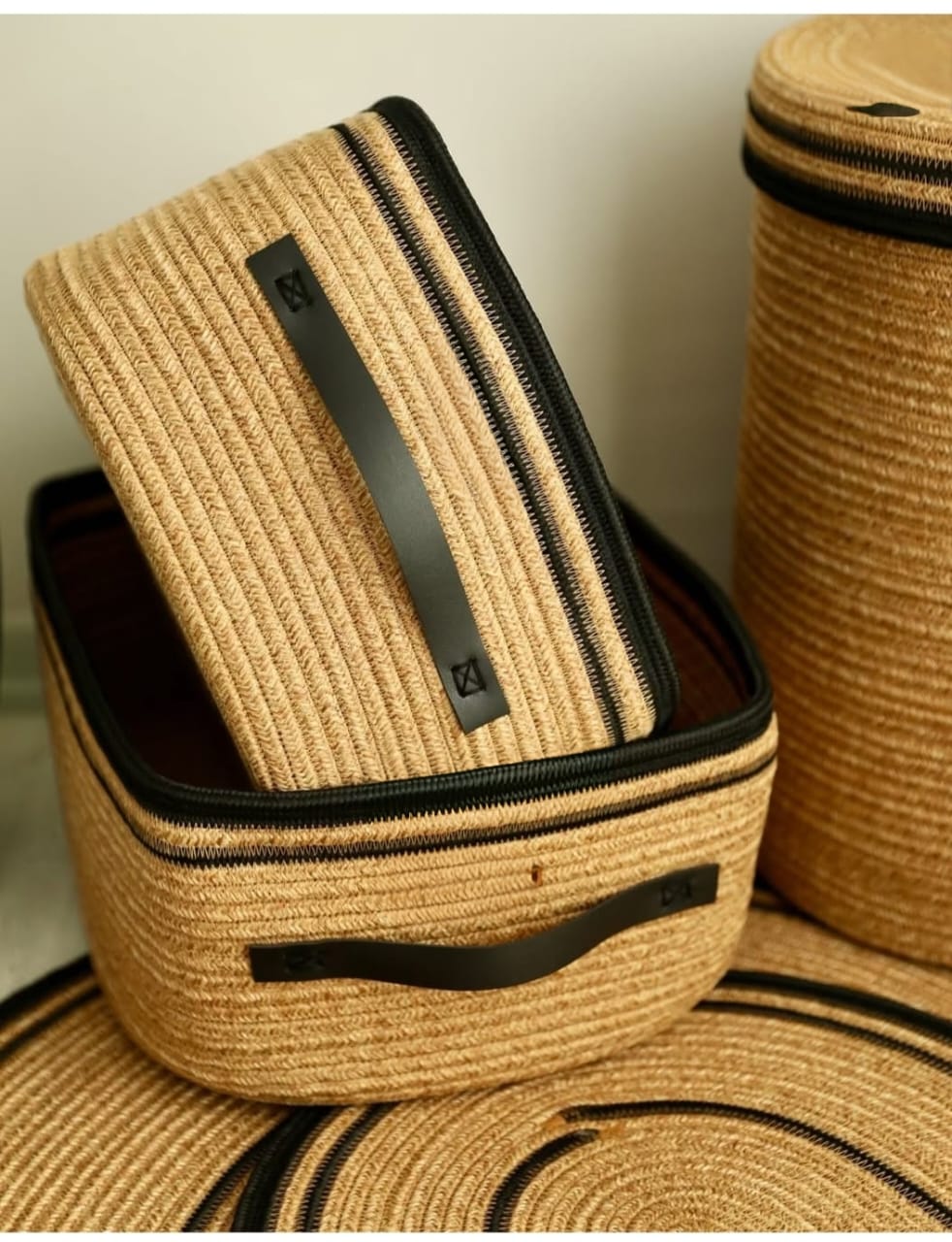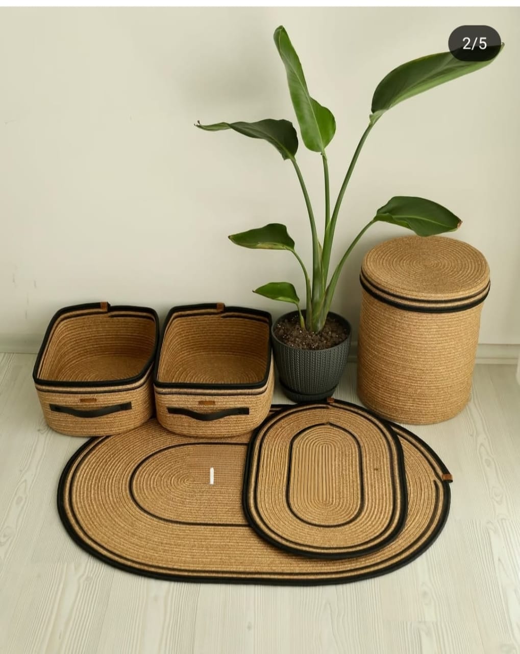handmade jute bathroom set: woven bath mat, laundry basket & storage binsHandmade Jute Bathroom Set: Woven Bath Mat, Laundry Basket & Storage Bins