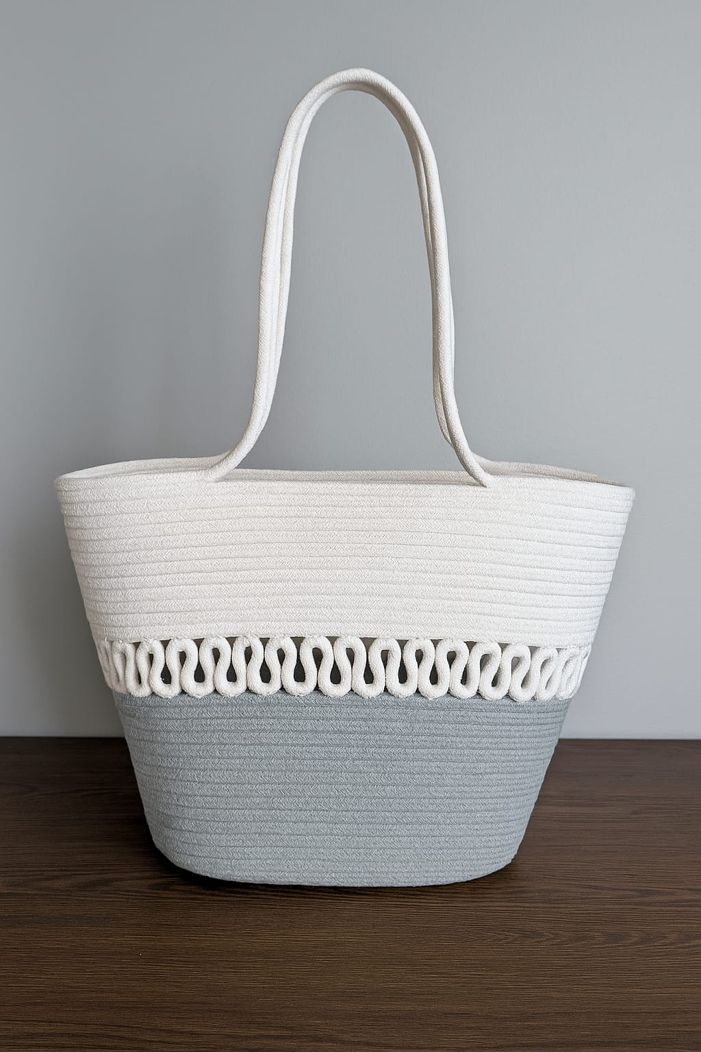White-Grey Jute & Cotton Bag – EKTAARI Chic Handbag